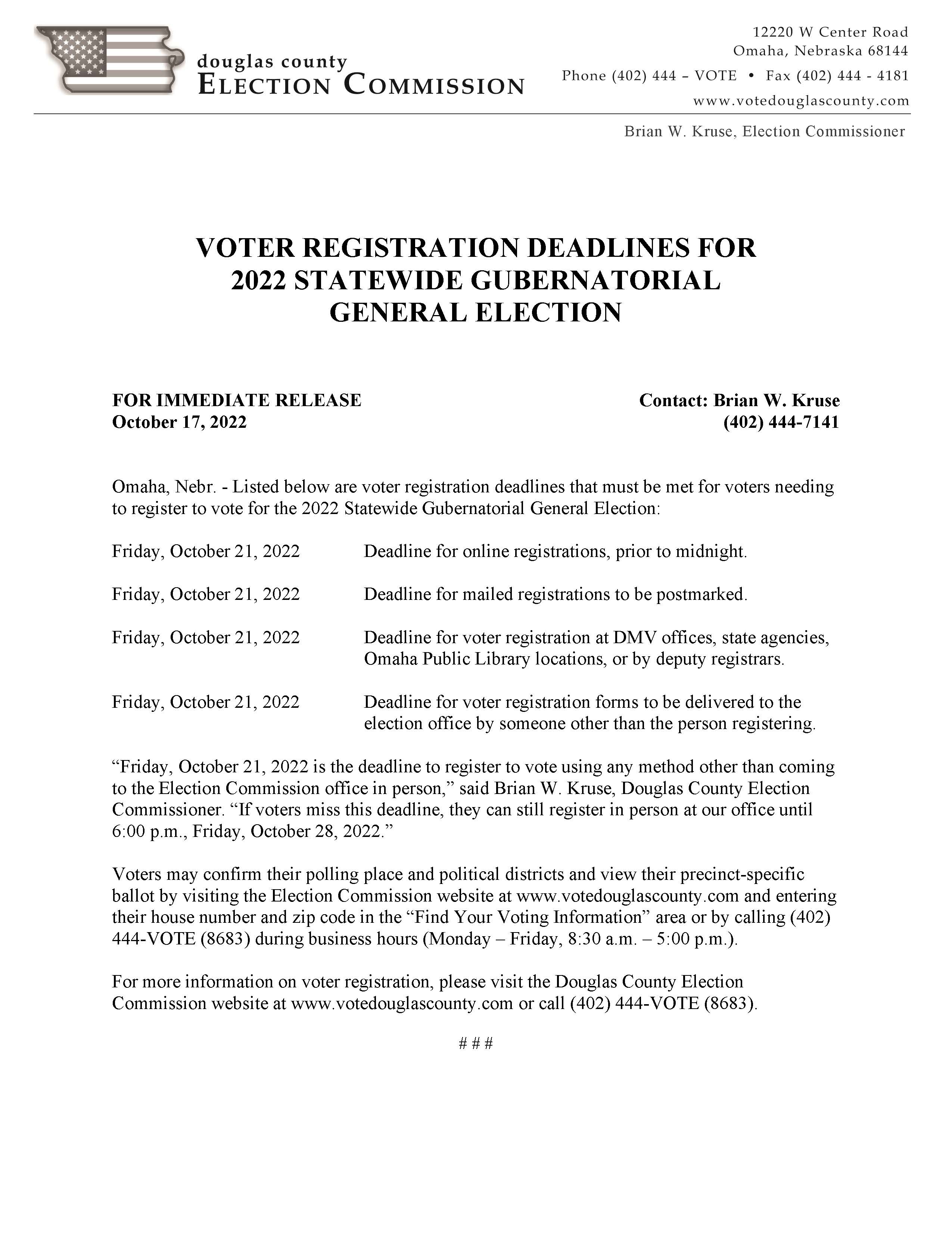 . Once you have applied to register to vote in a driver license office your information is forwarded to the specific county for which you have applied. Completed applications may be returned to the Election Commission by mail or in person to 12220 W Center Rd Omaha NE 68144. NOTE - you must already be registered to retrieve your information.